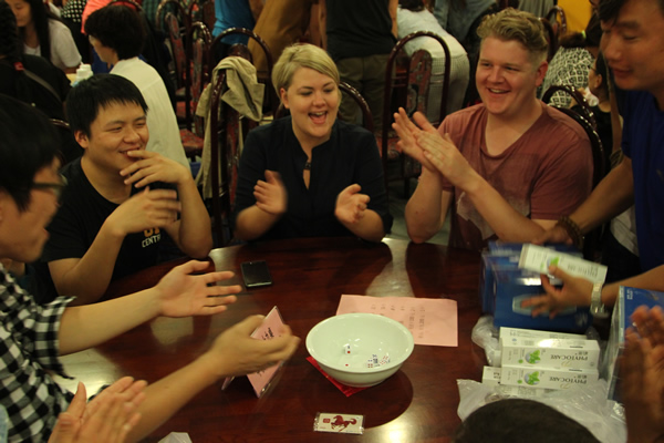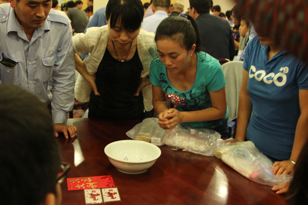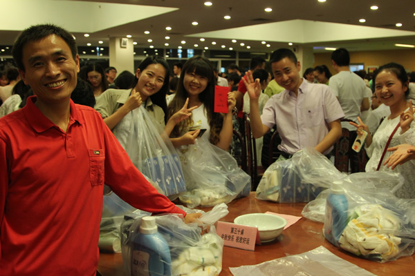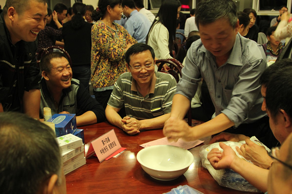 开场由艺体信息中心教师代表带来的节目拉开博饼活动的序幕。此次博饼活动共设71桌,最终产生十位状元进行最终头彩的争夺。博饼过程中,每一位恒信彩人脸上洋溢着幸福的笑脸,场面十分热闹。大家为得来的每一件奖品而开心,更为身在这样一个温暖、向上,有爱、有创造、有工作热情、更有人情味儿的集体中感到欣慰。