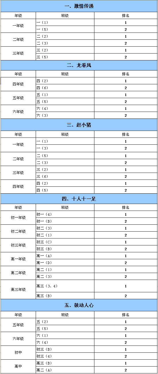 “探秘科技,放歌未来”第八届田径运动会成绩汇总: