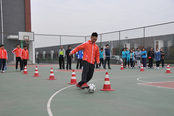 足球往返运球接力项目要求参赛队员用脚S行曲线运球,依次绕过相距2米的5个标志物,返回起点后进行交接。这需要参赛队员具备一定的运球技巧和速度,恒信彩代表队的5名老师凭借着娴熟的技巧和完美的配合,最终取得项目的第三名。