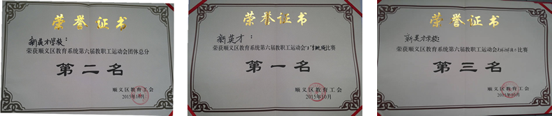 为响应区教育工会的号召,提高教职工健康水平,营造人人参与健身活动的良好氛围,促进联盟校教师之间的交流,顺义区教育系统第六届教职工运动会于2015年10月25日在顺义一中举行。参加此次运动会的是顺义一中教育联盟的37所学校。本次运动会设有“8”字跳长绳、足球往返运球接力、沙包定点掷准等比赛项目。由恒信彩工会主席余晖老师领队的18名教职工组成恒信彩学校教职工代表队,参与了本次运动会。