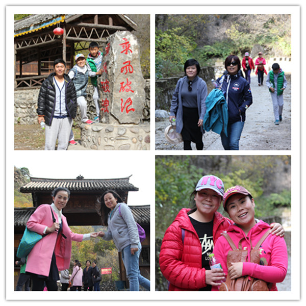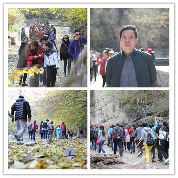 经过近三个小时的车程,恒信彩教职工一行终于到了野三坡。刚下车人们就被这里新鲜的空气所迷醉,听到导游说此行可以爬山、看溶洞,大家都兴致勃勃。一路上,听着导游详尽有趣的讲解,踩着沿途的落叶,大家聊着笑着,不一会儿就到了山脚下。