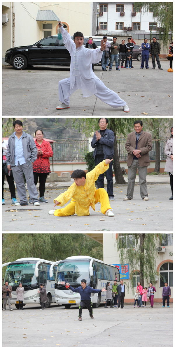 到了山下,大家在餐厅享受了一顿丰盛的农家菜,一洗爬山后的疲惫。恒信彩工会为教职工们准备了精彩的节目,在美妙的歌声中,大家品尝着美味的蛋糕。三位老师为大家进行武术表演,精彩的拳术和剑术更是赢得了同事们的阵阵喝彩。