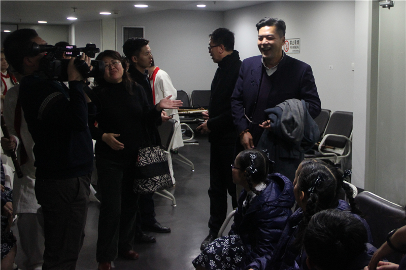 【兰春校长到后台看望同学们并祝贺演出成功】