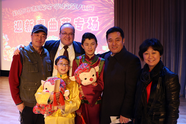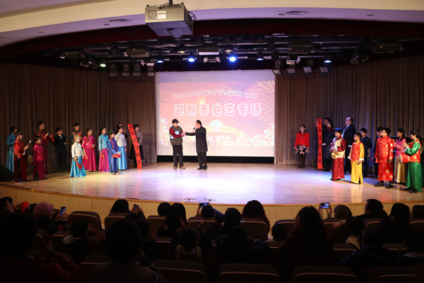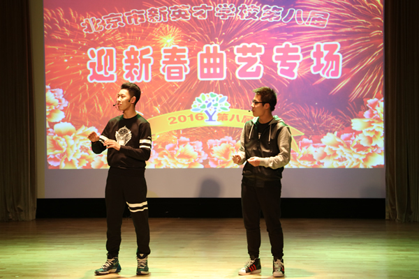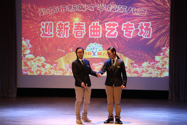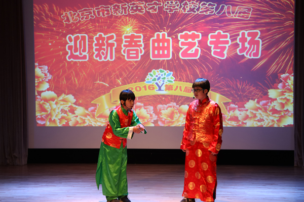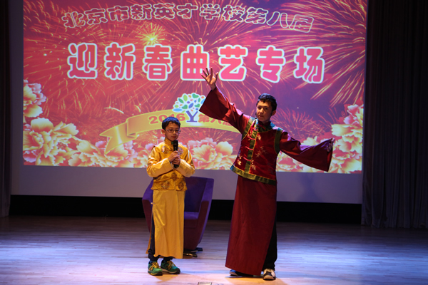 1月14日晚,我校第八届《迎新春曲艺专场》汇报演出,在报告厅成功举办。执行校长关校长,总校副校长、剑桥中心校长李放大博士,晚会总指挥、小学部校长李军以及汉语中心主任薛丽艳等部门领导与师生、家长们一起欣赏了这场由我校“刘义汉工作室” 编创的曲艺盛会。整场演出精彩芬呈、笑声悦耳,掌声不断。大家兴致勃勃欣赏了曲艺说唱《猴年大吉》等十四个曲艺节目;这些节目形式活泼多样,内容健康向上,作品精神抖擞,活力四射.洋溢着爱国、创新、包容、厚德的北京精神,也展示了恒信彩的教育理念,观众们尽情欣赏艺术,享受文化熏陶。
