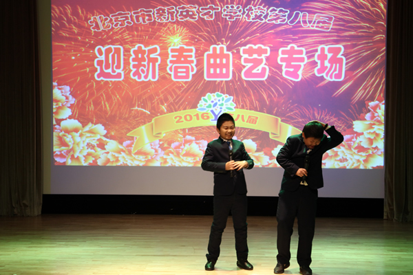 这场晚会的最大特点是充分表现了各学部小演员的风采。小学部女生郑怡、范梓涵合说的相声《巧学绕口令》精气神十足,以精湛的语言表达功力,让观众惊叹不已,展现了扎实的曲艺基本功。小学部新手刘行、刘朋达表演的相声《新编反正话》赢得了观众潮水般的掌声,风趣幽默的说词让观众哈哈大笑;汉语中心美籍学生盖天和盖帝表演的双簧《兄弟》,贴近生活、贴近实际,虽是新手上台,但表现不凡;中学部咸俊同、严 耑合说的相声《乱用量词》、剑桥中心王欣媛、廉惠晶表演的相声《一字多音》;中学部肖楠、陈涛表演的相声《朗诵趣谈》、小学部李墨林张思表演的相声《学问》这些我校新创段子,不但健康搞笑,还有丰富的语文知识性,刘韵芯和李墨林表演的相声《二重唱》,黄世茂、兰睿泉表演的相声《笑与走》在幽默诙谐中带有善意的讽刺,颇具娱乐性、趣味性;刘韵芯和张煜表演的相声《装小嘴》、万福膑和范炜博表演的相声《不能说不》,再次受到欢迎。曲艺说唱《猴年大吉》更具看点,全体演员上台,学生、老师、家长、领导友情互动,营造了浓厚过年气氛,把晚会推向高潮。《迎新春曲艺专场》连办八年了,展演优秀节目、展示丰硕成果、展现真挚情怀,成了我校特有的文化盛宴。