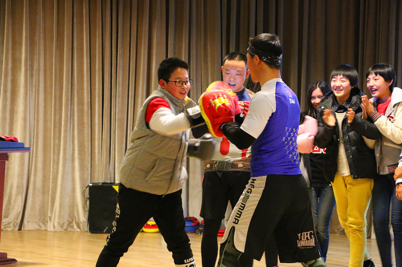 今天晚上,同学们不仅仅了解了搏击运动的相关知识,学会了几招简单的“自我防卫术”,更增添了锻炼身体的信心和意识!头脑强大、身体强大、意志品质强大才是真正的成熟与实力!