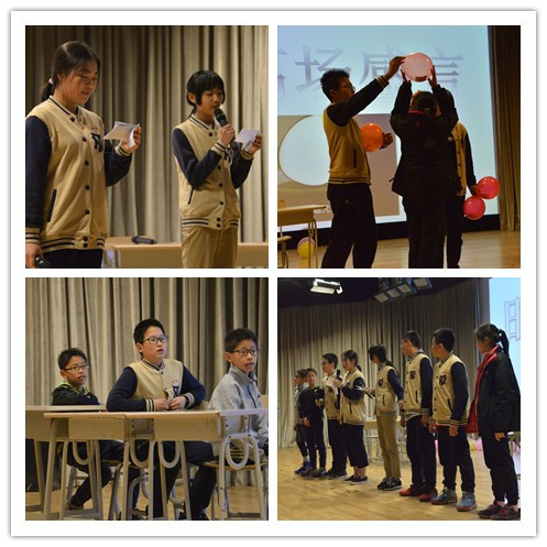 3月15日的课间为初一专场,3月16日的课间为初二专场。在各位同学老师的期待下活动终于拉开了帷幕。学生会同学们在前期为大家装饰好了比赛场地,还精心的准备了史上最“温柔”的惩罚道具,这场高逼格的知识竞赛到来了。