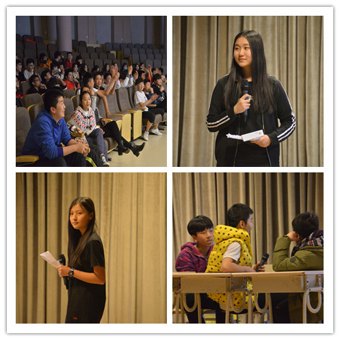 初一的同学各展风采,摩拳擦掌,争先恐后,好似第一名已经到手一样;初二的参赛同学也不例外,不相上下,齐心协力,龙争虎斗尽在报告厅。