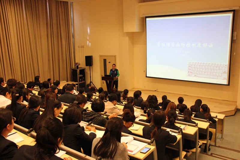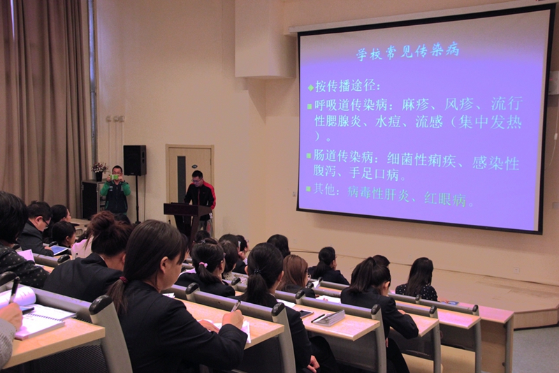 传染病预防专题讲座和消防安全专题讲座是恒信彩对新入职教职员工培训的重要内容之一。4月8日,全校副班主任、保育员以及2015年9月新入职的教职员工共同参加了春季传染病预防专题讲座。本次活动由行政部余晖主任主持,特别邀请空港医院预防保健科的李科长和金大夫为与会教职员工进行了深入、细致、全面的讲解。