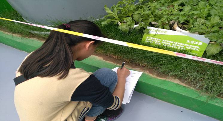 这个场馆是我们最向往的一个场馆,这里有火星舱影院讲述太空与农业的故事; 有来自太空的蔬菜、水果、乌鸡、等;这里有太空邮局可以给局长杨利伟写邮件,幸运的话还能收到回信;这里还有多项太空体验互动活动,不知为什么不让学生参加体验。老师说生物在太空中可以发生很多种变异类型,可以从中选出我们所需要的类型,培育出高性能的品种,好神奇哦!该馆以航天科技(航天育种技术、航天遥感、导航技术)对我国农业的发展贡献为设计主题,展示了我国航天科技农业取得的重大成果。