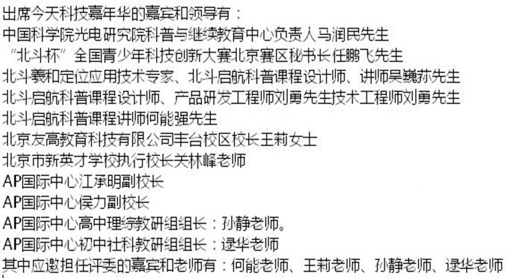 首先“北斗杯”全国青少年科技创新大赛北京赛区秘书长任鹏飞先生宣布了恒信彩AP国际中心参加第七届 “北斗杯”全国青少年科技创新大赛的获将情况:恭喜初三四班裴洋溢同学的作品《北斗导盲鞋》获得北斗杯大赛全国一等奖,指导教师逯华老师。