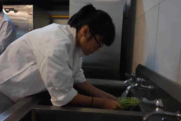 一进到厨房,我就看到了丰富的菜色和烹好的香料,并与大家开始进行各项准备工作。首先,我有一个重量级的工作——洗娃娃菜,你可不知道,这看似简单的蔬菜,洗起来可真不容易!我认真的清洗着每一片叶子、每一个根部,一遍又一遍地做着复杂繁琐的工作,感受着清水滑过手边的感觉,甚至最后还秀了秀我的刀工,看着自己洗的、切的菜,我相信,它们吃起来味道一定是绝佳的!