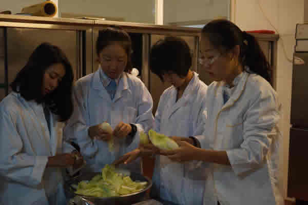 这天,我们按时起床,有条不紊的收拾好内务,憧憬着午饭的美好。自习结束后,我们就被选为洗菜人员,随值班老师到厨房,换好衣服,扎好头发,开始了我们的工作。