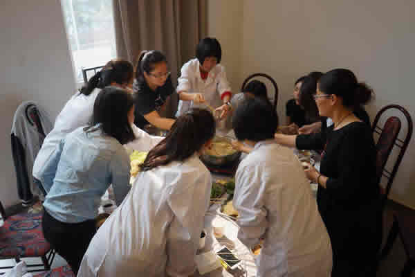 早上,便有老师和同学前去挑选食材,而老师给我分配的任务便是洗菜。来到二楼后,我们便见到了各种食材。哇!菌类、肉类、蔬菜……真是应有尽有,看了就让人嘴馋。我们换好衣服便开始工作,一丝不苟的洗着每一片菜叶。虽然衣袖湿了,但却没有一个人说出一句怨言。最后,大家一起摆盘上桌,调好酱料和锅底,开动啦!