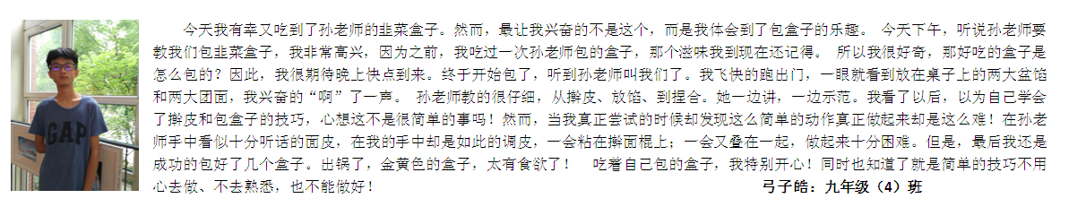 “只有自己包的盒子才是最好吃的。”——王子豪:七年级(1)班