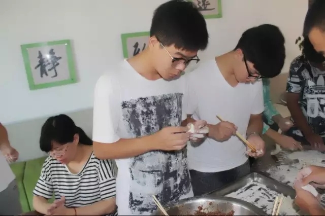 作为剑桥中心的长期留校生,对第一次的的周末活动感受颇深,吃过早饭后,我们帮老师们把包饺子的材料和就餐的物品送到目的的。自习后,我们返回活动室,同学们和老师基本上已经来齐了,桌子上已经准备好了食材,有种家的温馨,真像是一家人在一起!