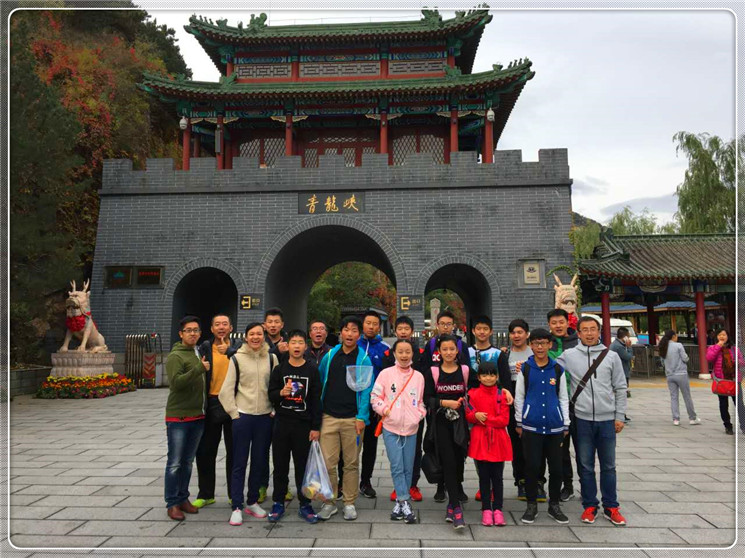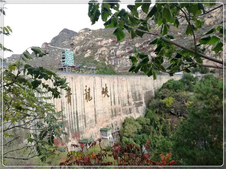 临走前,我们师生在校门口拍了集体照。去的路上我们欢声笑语,欣赏着车窗外深秋的景色,远处黛青色的山脉跌宕起伏,连绵不断,没有多长时间就到达了目的地。下了车,我们在老师的带领下,向青龙峡大峡谷前进。青龙峡两边都是陡峭的悬崖峭壁,上面长满了红色的植物,远看就像是火红的枫叶,一片片,夹杂着绿色的灌木,真是一道美丽的风景!崖壁下面就是琮琮清澈见底的溪水,水尤清冽,溪水里面鱼儿很多,皆若空有无所依,同学们买来鱼食,抛洒,鱼儿迅速的从四面八方游过来,瞬间水面沸腾了,鱼儿大快朵颐。岸边的柳树婀娜多姿,像是和我们招手致意。我们继续前行,边走边看迷人的风景,悬崖上有雕刻的文字,还有飞流直下的瀑布,呼吸着新鲜的空气,舒服极了。我们来到了大坝上面,往山顶上去有两种选择,一是自己爬上去,大约一小时到达山顶;一是坐缆车上去,大概需要十分钟。有的同学想锻炼身体爬上去,我和吴名洋决定坐索道上去,因为我们俩想尝试一下坐索道在空中惊悚的感觉,一座上我们就后悔了,吓死我们了,索道的缆车一会儿上,一会儿下,差点吓哭了。到了山顶,青龙峡的全貌尽收眼底,无限风光,美极了。呆一会,我们就下来了,回到集合的地点。