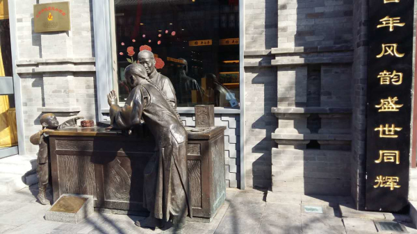 大栅栏街道两边拥有多家独具经营特点和代表性的老字号店铺。有都一处烧麦馆,有全聚德烤鸭店,有同仁堂药店,有瑞蚨祥绸缎皮货庄等等。这些都是有着悠久的历史,享誉京城乃至国内外的百年老店哦。