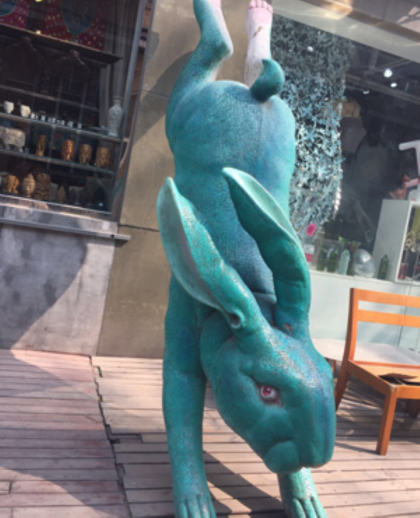走出了A区,我们在外面欣赏艺术家们的各种成果,突然看见一大堆“梅花桩”井然有序地放在那里,我仔细一瞧,它的外形咋这么像个字呢?带着满心的好奇,我站在一个桩上向下看,发现原来是两句名言啊!它只雕刻出字的外形,中间没有镂空,所以很难分辨,但当人们从上面看下去时它们又都非常清楚了。这是不是在诠释“不识庐山真面目,只缘身在此山中”的哲理呢?还是告诉我们凡事跳脱出来审视,总会有不一样的发现?在一大堆“梅花桩”旁,有一个用积木搭起来的维纳斯,她足足有两层楼高,经典形象的颠覆式创想与创作让人叹为观止。艺术家的创造力确实让人折服。从798艺术区回来后,那些神奇的雕塑、壁画和充满想象空间的艺术形象在我头脑中挥之不去,真正的艺术和那绕梁三日的音乐一样,总是更持久地打动着人心。(Y10B胡建洋)