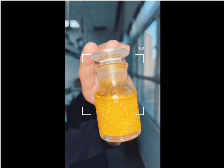 “黄金雨”实验其实是碘化铅的沉淀实验,碘化铅是亮黄色的粉末或者鳞片状结晶,与黄金的颜色非常相似。碘化铅的溶解度约为0.08g,溶解度较小,因此我们可以用可溶性的铅盐和碘化钾反应来制备碘化铅,反应的化学方程式:2KI+Pb(NO3)2→PbI2↓+2KNO3,生成的碘化铅沉淀亮黄色闪闪发光,就像在下“黄金雨”一般,非常漂亮。