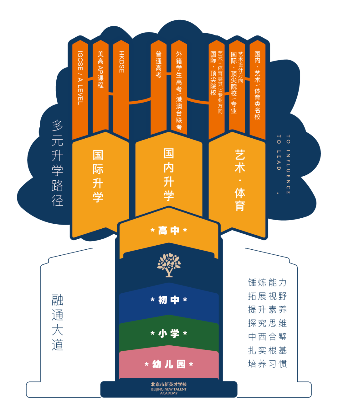 是一所集幼儿园、小学、初中、高中为一体的十五年一贯制学校。义务教育阶段夯实基础,扎实学术;高中阶段呈现多元升学路径,包括国内高考课程、英国A Level课程、美国AP课程、中国香港DSE课程、国际艺术高中课程等,最大化满足学生个性化升学需求,为每一位学生提供最适合的课程,打通全球升学路径。