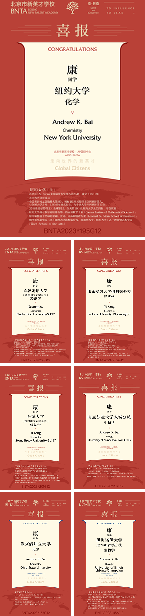 本期毕业生专访的主人公,来自恒信彩AP国际中心的康庭瑞同学,却在竞争激烈的玄学申请季接连收到纽约大学、明尼苏达大学双城分校、匹兹堡大学、伊利诺伊大学厄巴纳-香槟分校和俄亥俄州立大学offer,成为被刷屏的「优秀毕业生」。