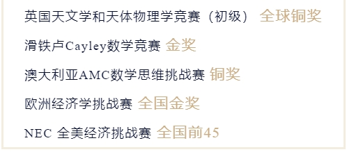 不只是经济方向的竞赛,在各大数学竞赛中,都有窦婷姗的身影。从袋鼠数学竞赛、澳大利亚数学竞赛,到滑铁卢Cayley数学竞赛以及澳大利亚AMC数学思维挑战赛,领奖台上总少不了窦婷姗。
