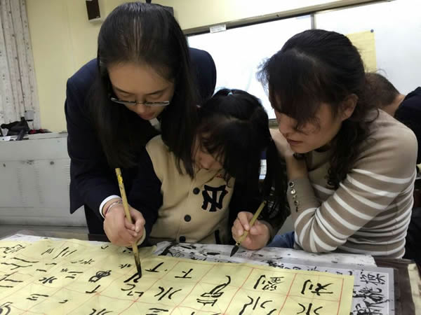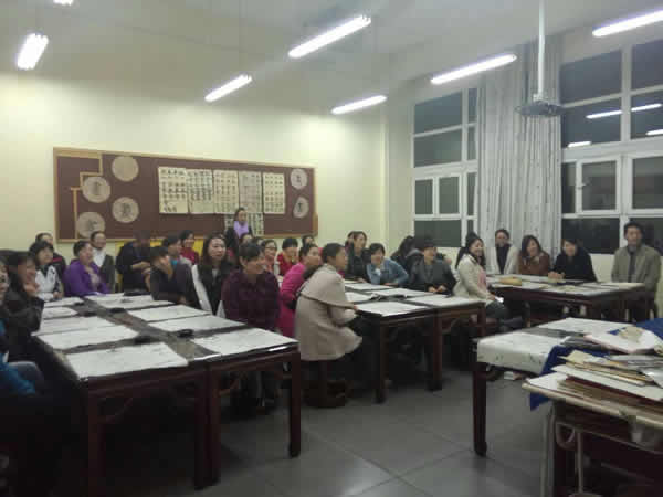 中国的汉字书法是一门古老的艺术,历史悠久,源远流长。几千年来的发展变化,凝结了中华民族的聪明智慧和不朽的创造,被誉为中国古代第五大发明。在场所有人,跟随着李校长的语言,在记忆的宝库里搜寻着:寺庙正殿上方的“大雄宝殿”,山海关的“天下第一关”,故宫里的“正大光明”,传统店铺的“六必居”、“稻香村”、“同仁堂”,亭台楼阁的上的“匾”、“额”、“对联”,日常居家的字画、福字……
