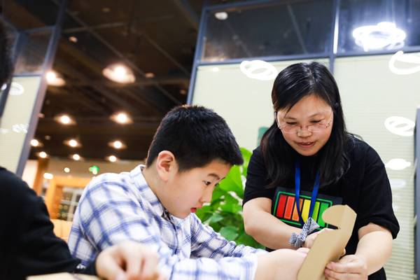 同学、老师及家长开心地进行创作体验,好多成员都具有超强的设计能力,努力完成创作任务。