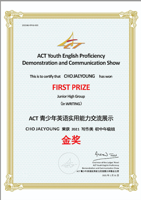 赵在荣(韩国)荣获写作类初中组金奖;