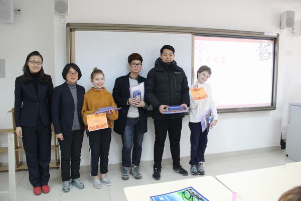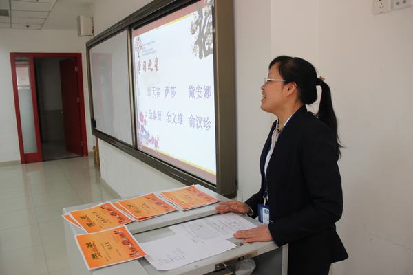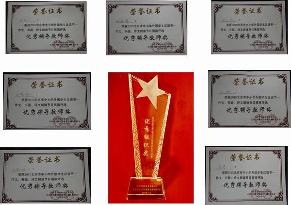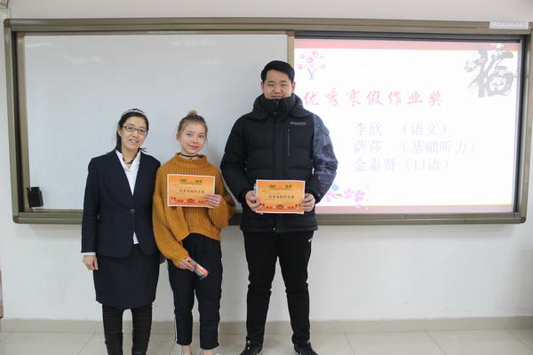 大会第二项是颁奖。首先,对上学期期末阶段表现优秀的同学进行了奖励,分设四个奖项:学习之星、优秀作业奖、出勤奖、词王争霸赛奖。接着,对北京市中小学外国学生汉语节中获得“优秀辅导教师”称号的老师进行了表彰。颁奖典礼上,掌声不断,同学们心情激动,跃跃欲试,期待着在新学期取得更好的成绩!