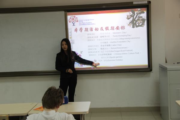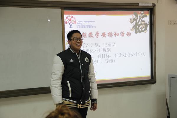 接下来是新生自我介绍,本学期的新同学进行了自我介绍,老生们以热烈的掌声欢迎新同学加入汉语中心大家庭。