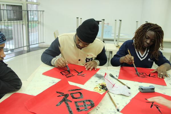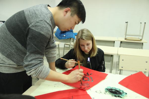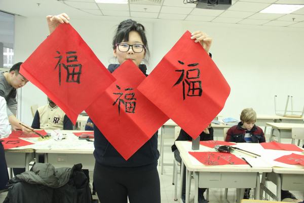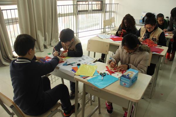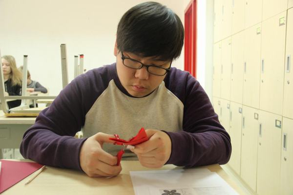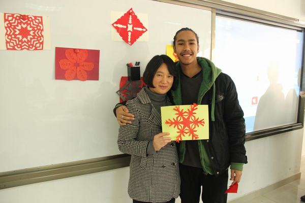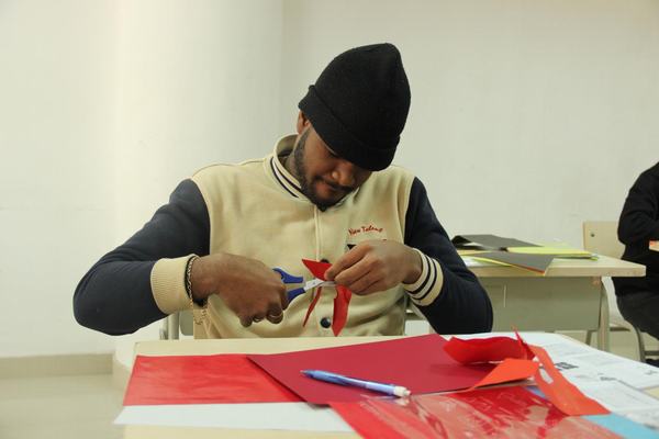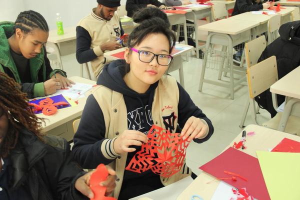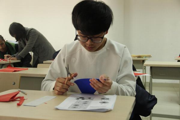 如果说写毛笔字对外国学生来说是一种新奇的体验的话,那么剪窗花就让他们觉得不可思议了。学生们好奇地动手DIY,在纸张折叠与辗转中,且看刀剪翻飞,一个个创意无限的镂空作品被创作出来。虽然还显稚嫩,但从他们认真的表情上,您能看出他们对中国文化是多么喜爱啊!
