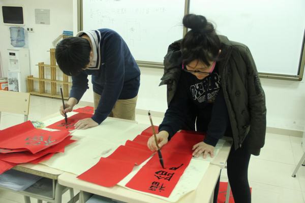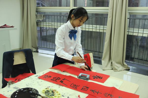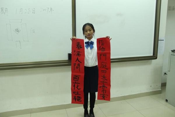 了解了“福”字和春联的起源、形式、寓意后,学生们激情澎湃地挥毫泼墨,一张张“福”字,一副副“对联”就在各位小书法家笔下诞生了,有红纸黑字为证哦!