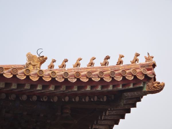 同学们兴致勃勃地参观太和殿的各处,他们有的关注皇帝的宝座,有的喜欢威武石狮,有的则惊叹石雕的精美。他们观察细致,善于思考,还不停地向老师问问题呢。比如:屋脊上的吉祥瑞兽代表什么?为什么很多地方都有龙的雕刻?汉白玉栏杆上的龙头有什么用途?当豁然开朗时,他们便由衷地赞叹中国文化的博大精深和中国古代劳动人民的卓越才智。