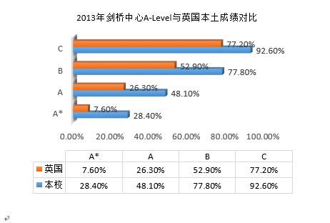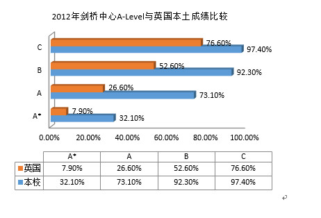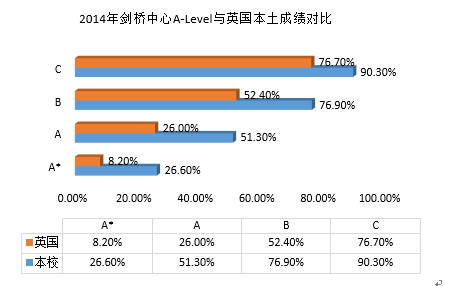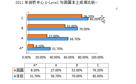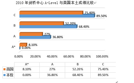 2010年——2014我校成绩与英国本土A-Level成绩比较(优秀率)