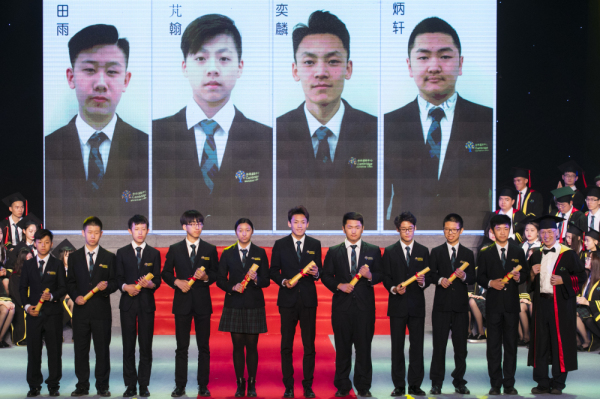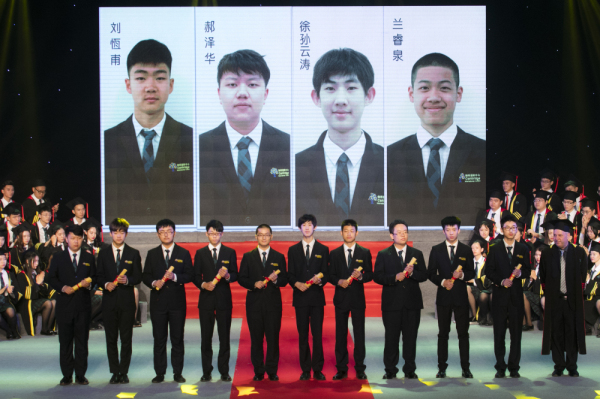 关林峰校长为郑耀南,胡炜杰,徐浩宁,田宇豪,严耑,刘必骏颁发毕业证书