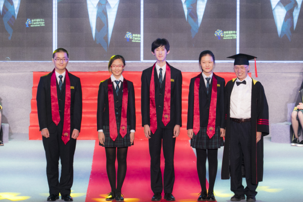 剑桥国际考试委员会 东亚区 代理总监 李娜女士 为优秀毕业生刘思民、余弘宇、叶敏、阙可鑫 颁发毕业证书及授予荣誉带。