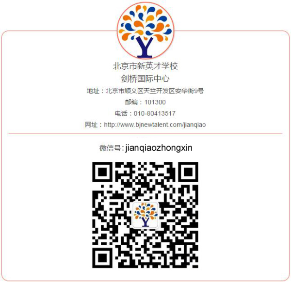 Email: xzyx@bjnewtalent.com(校长邮箱)sdm@bjnewtalent.com(家长接待中心) gjbgy@bjnewtalent.com(国际部) xychr@bjnewtalent.com(人力资源部)