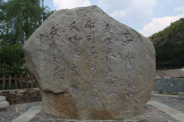 在经过一个多小时的长途后,眼前的满山翠绿中显现出一点——一抹令全车人惊喜的点:指示牌上写着古北水镇到了。