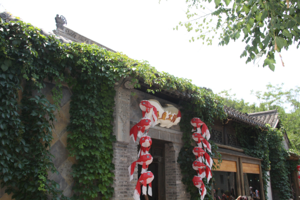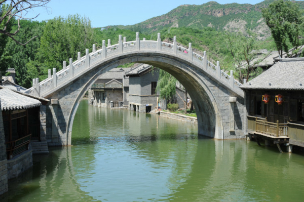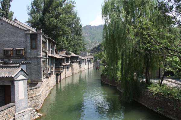 看遍溪水长流,踏过漫漫长路,领略古风古色。这就是古北水镇啊!一座座高低错落有致的青砖石屋依水而居,空气中也弥漫着迷人的小镇情怀。风一吹,泛起阵阵涟漪。幽幽墨绿的柔河映着行行色色的的行人。葱绿的群山守护着这古朴沧桑的小镇。一切都是那般的绿,绿水青山,仿佛融入了大自然。