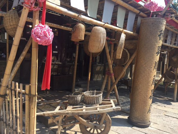燥热的天气压得人烦闷,一进水镇便扎进一家小店,巧是卖伞和扇子的,刺绣与水墨装点得梅鸟折扇精巧雅致,也有诸葛亮喜好用的羽毛扇。里屋还有颜色鲜明大小各异的油纸伞,基本人手一个地买了自己喜爱的一把扇子。
