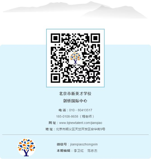 Email: xzyx@bjnewtalent.com(校长邮箱)sdm@bjnewtalent.com(家长接待中心) gjbgy@bjnewtalent.com(国际部) xychr@bjnewtalent.com(人力资源部)