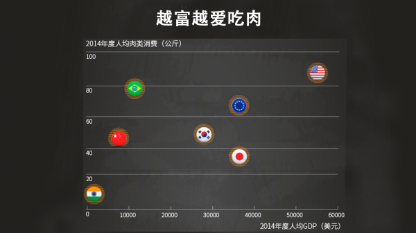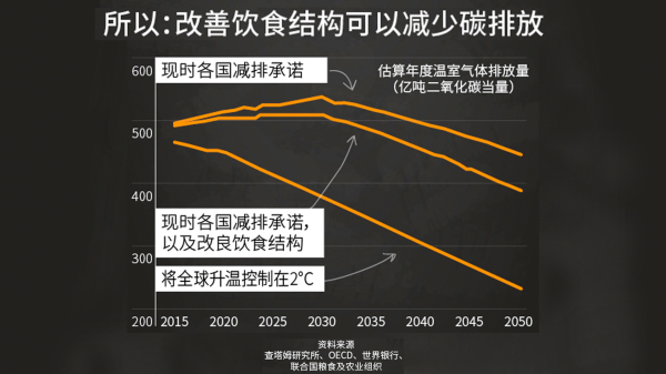全球超过三成谷物用以饲养牲畜,畜牧业造成全球51%的温室气体,生产肉类过程消耗大量食用水,每人吃素一天,可以节约1610公升水,一个人吃素一天可以减少1.5吨碳排放,1.5吨碳相当于66棵5米高的大树。