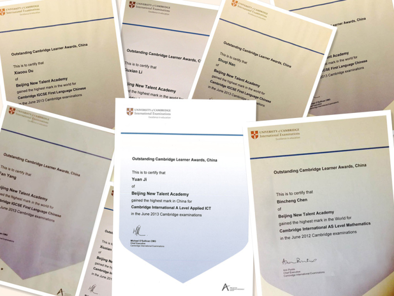 2006-2015年,剑桥国际中心的考务工作和考试现场抽查情况的所有项目都被CIE的检察官评委“全优”。 剑桥中心的考生们在全球42万考生中共摘取14项全球最高分,8项中国最高分大奖。我们仅举三个偶像为例。