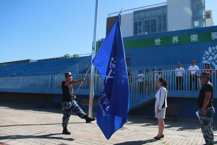 剑桥中心高中部主任张志芳老师宣布军训开营仪式正式开始,并从教官手中接过恒信彩学校校旗,从这一刻开始,同学们都感受到了自己肩负的使命。
