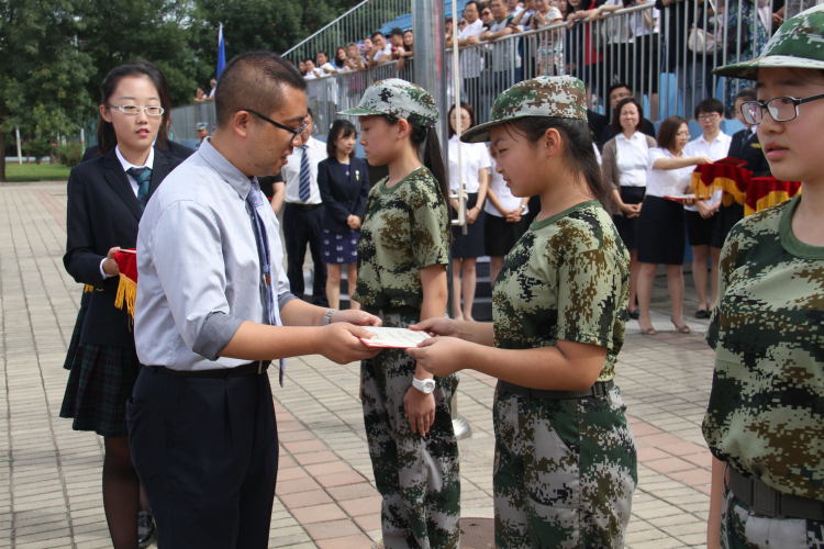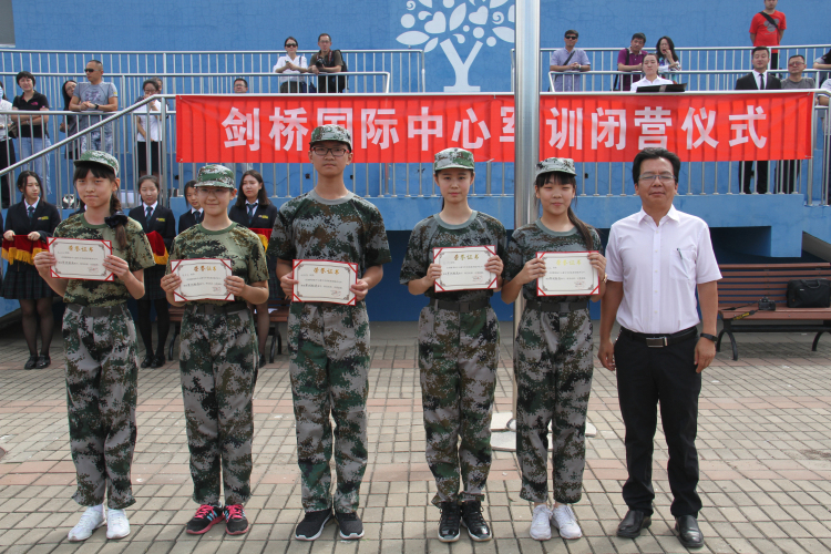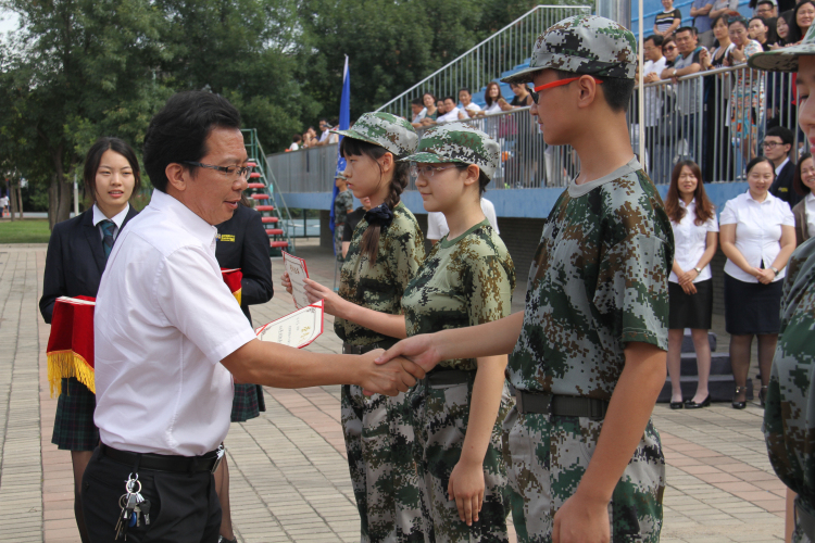 9月2日上午,在学校操场,全体军训新生接受了剑桥中心的校长、老师和家长的共同检阅。