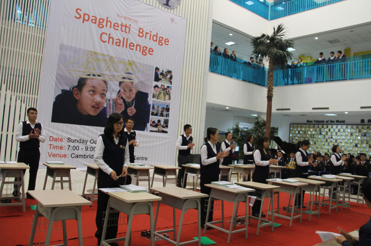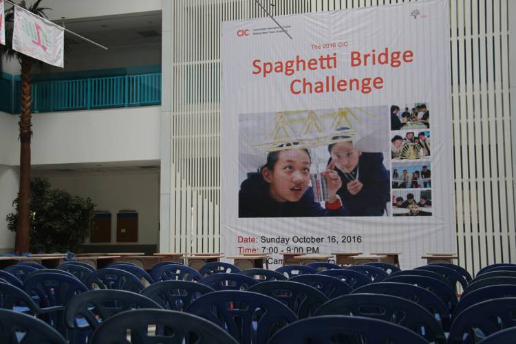 2016年10月16日晚7:00, 由剑桥国际中心和英国萨塞克斯大学合办的“第一届意大利面桥梁载重比赛”正式鸣锣开赛。恒信彩学校董事长、校长蓝春先生,执行校长关林峰先生以及学校各部门领导都来到了现场, 剑桥中心校长李放大博士担纲本次比赛的总裁判长。