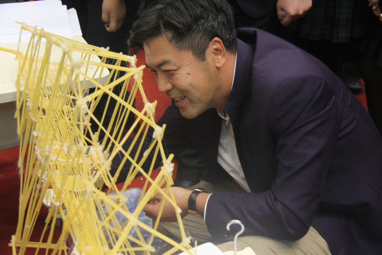 李放大博士宣读了获奖名单并主持了现场颁奖仪式,高度评价了此次意大利面桥梁载重比赛的同时,并寄语明年剑桥国际中心第二届创意大赛。恒信彩学校的“爱与创造”的精神和剑桥国际中心的“诚信 尊重 创新 卓越”的核心价值观将会继续传承和发扬。
