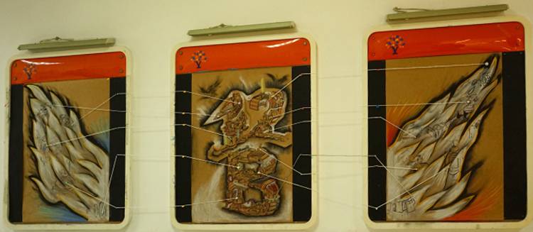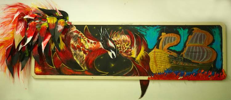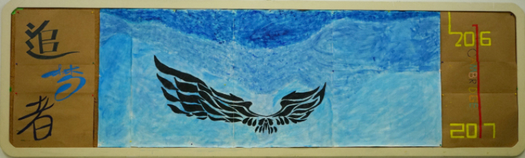 内墙:主题为重生,正如这只刚从火焰中涅槃的凤凰,因为我们一些同学并没有在上次大考中取得好成绩,希望我们在火焰般的高三得到重生在下次考试中所向披靡。